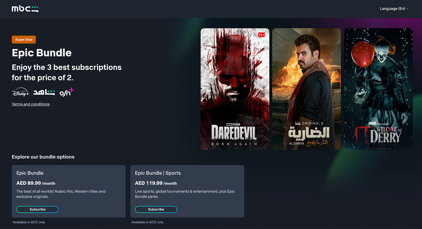 A different approach appeared with Shahid, OSN+, and Disney+: