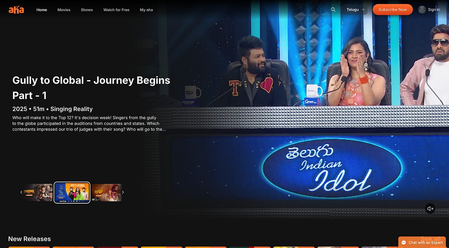 Content is Aha’s forte, spanning 750+ films and 40+ original shows as of late 2023. It differentiates itself by not only providing the usual mix of movies and web series, but also investing heavily in regional non-fiction formats. Aha has been a pioneer in Telugu reality and talk shows on OTT – e.g. it launched Telugu Indian Idol (a singing competition) and the celebrity talk show Unstoppable with actor Nandamuri Balakrishna. These shows became massive crowd-pullers and “subscription drivers” for the platform. For instance, Unstoppable Season 2 brought a 60% increase in new subscribers over Season 1, and together Seasons 1–2 clocked 35.7 million unique viewers. Similarly, Telugu Indian Idol drew in significant viewership and even attracted multiple brand sponsors despite being on an OTT (not TV) – showing that Aha could generate event-level buzz in a regional market. By focusing on local reality formats and star-led shows that national OTTs hadn’t ventured into, Aha tapped an underserved appetite and boosted its subscriber acquisition.