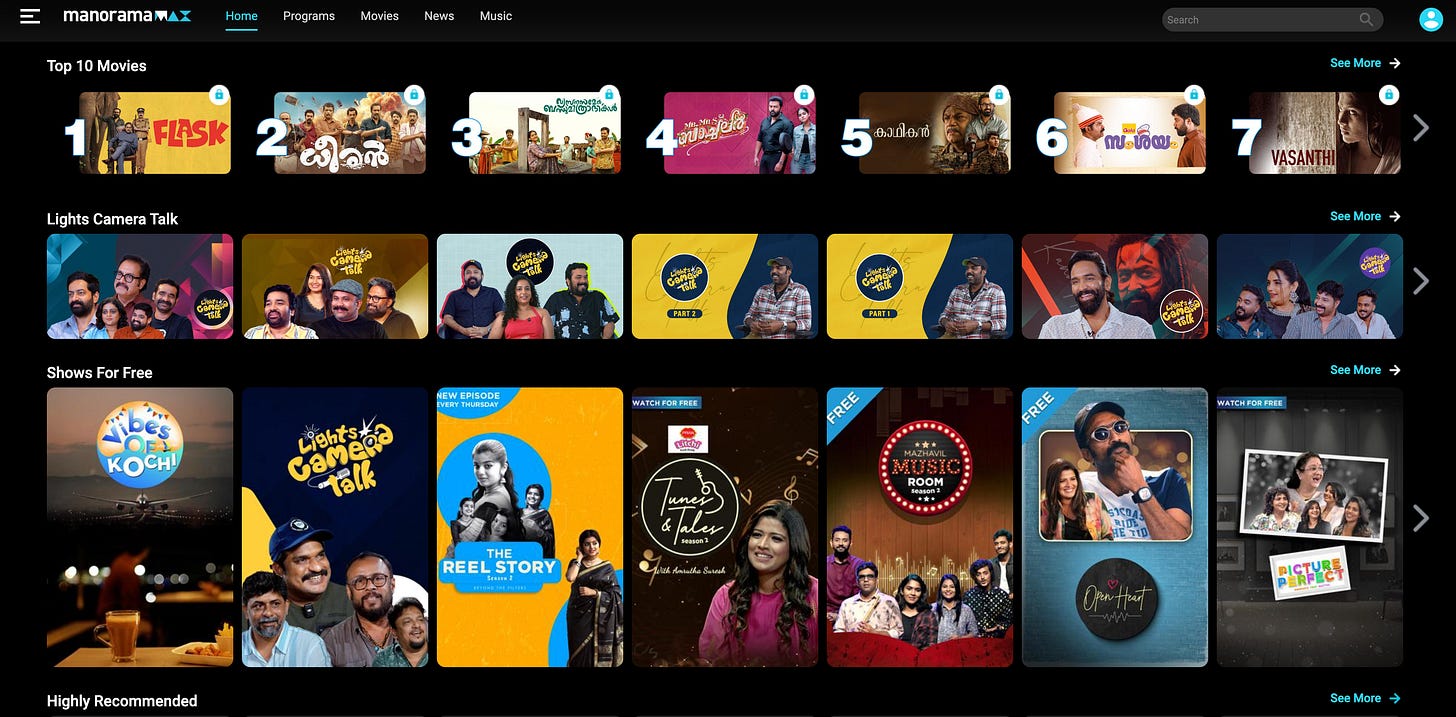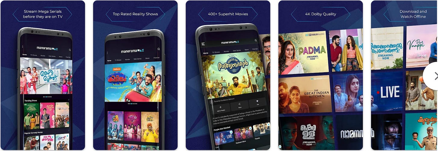 One of ManoramaMAX’s key strategies is early window content for subscribers. If you subscribe to the premium tier, you can watch new episodes of TV serials before they air on television (same-day early access), and see monthly movie premieres on the app before they’re broadcast on TV. This “digital-first, TV-next” approach not only incentivizes fans of Manorama’s shows to subscribe, but also helps the company’s advertising business – by driving buzz to the TV premieres later. (Notably, ManoramaMAX has been recognized with Best Regional OTT Platform awards four years in a row, suggesting it’s kept viewers happy with this model.) On the originals front, ManoramaMAX has produced Malayalam web series and specials that align with local sensibilities, though its original content volume is modest compared to bigger players. It leverages the trust and brand of Manorama: the platform pitches itself as “the Malayali’s home OTT”, even highlighting that a significant chunk of its online traffic comes from the Malayali diaspora in the Gulf (UAE, etc.) who rely on Manorama for staying connected to Kerala. This diaspora focus is important – Kerala has a large expatriate community, and ManoramaMAX, through ManoramaOnline and the OTT, reaches Malayalis worldwide, offering them everything from the latest news to nostalgia sitcoms in one app.