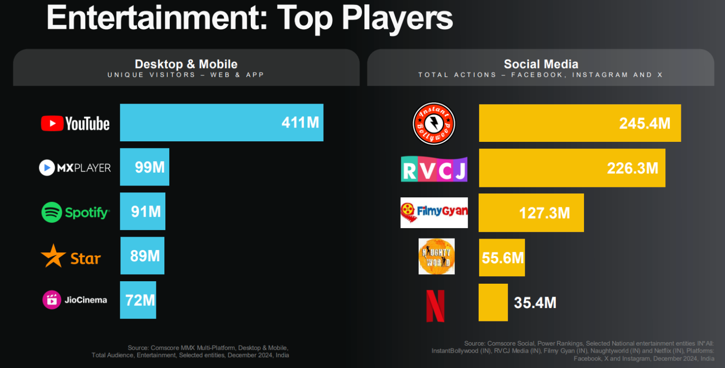 Recent data from Comscore's "India Year in Review ‘24: Setting Stage for 2025" report offers insights into platform performances and emerging trends [Source: e4m]