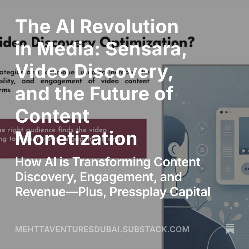 Please sign up for my other newsletter focused on “eyeball economy” focused startups (Media, Entertainment, Gaming, Ad Tech & Sports), the Indian / Middle East startup and venture capital ecosystem; in your inbox every Monday: Mehtta Ventures Dubai.
