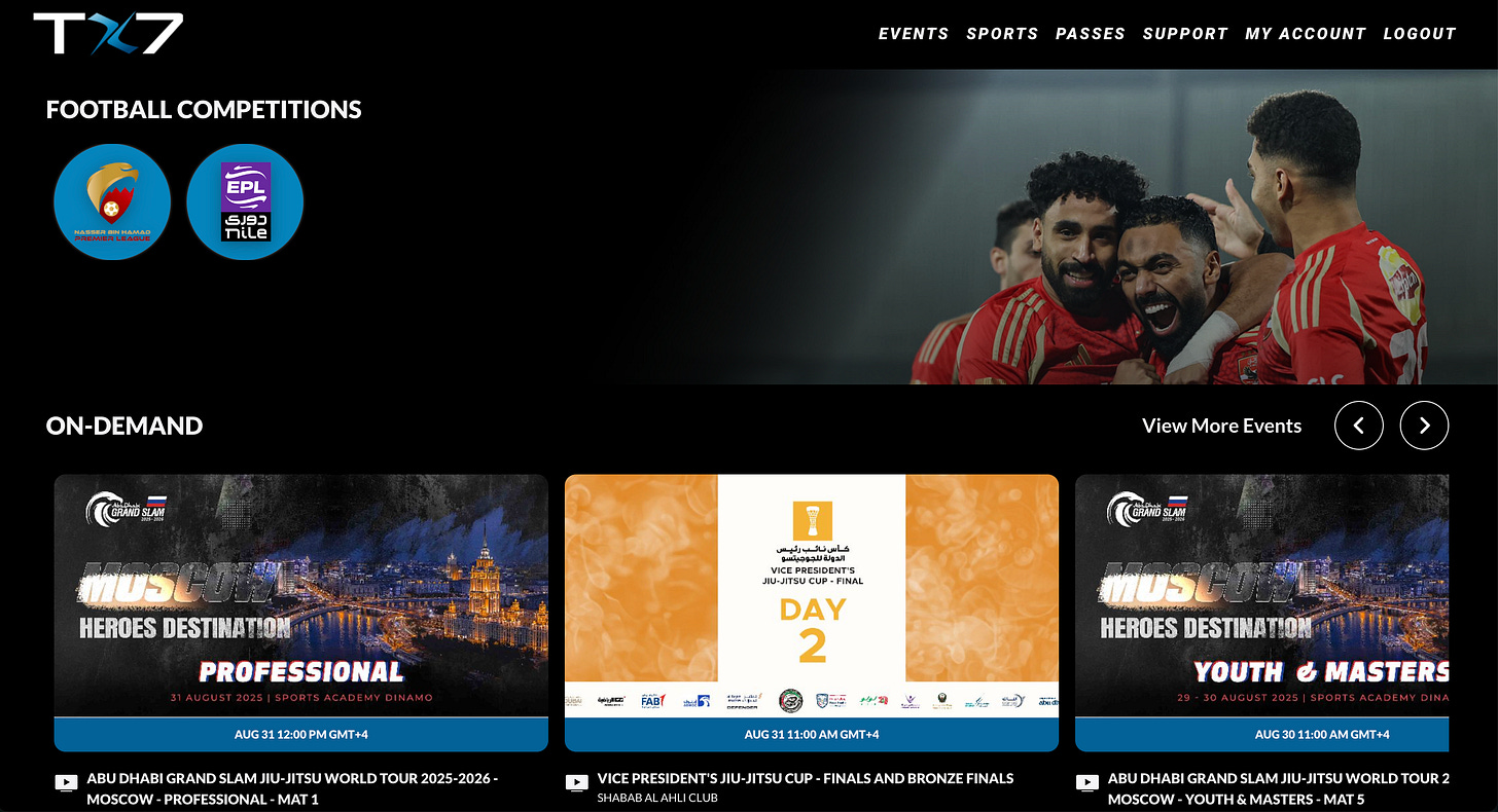 An interesting new player is TX7 from Abu Dhabi. It offers premium regional competitions like the Egyptian Premier League, the Arab Handball Cup, and UAE MMA Championship.